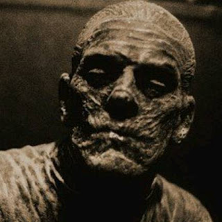 the door was a dessicated figure wrapped in crumbling linen rags. The mere
